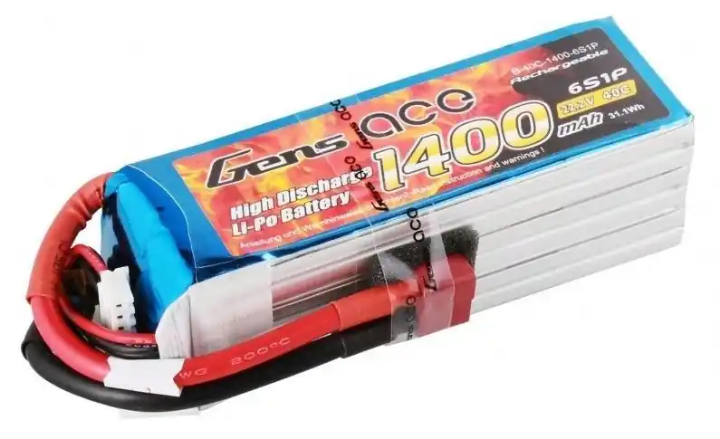 Akumulator LiPo Gens Ace 1400mAh 22.2V 6S1P o podwyższonym prądzie rozładowania 40C. Przeznaczony do stosowania w modelach RC.