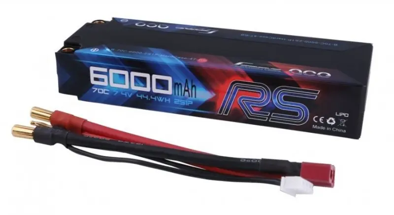 Akumulator LiPo Gens Ace 6000mAh 7.4V 2S1P o podwyższonym prądzie rozładowania 70C w twardej obudowie. Przeznaczony wszystkich modeli rc a szczególnie do samochodów RC w skali 1:8 i 1:10.