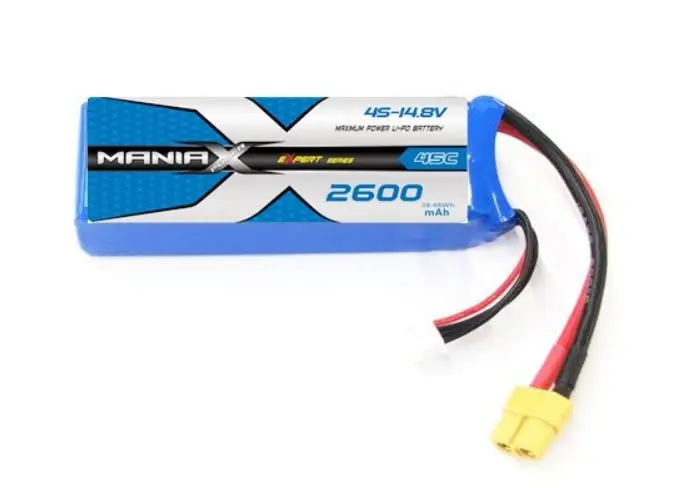 Akumulator LiPo 2600mAh 14,8V ManiaX o prądzie rozładowania 45C z wtykiem XT60. Przeznaczony do modeli RC.