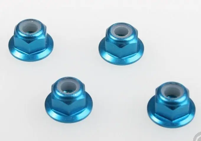 Aluminiowe nakrętki do kół na gwint M4. Odpowiednie do skali 1:10. W komplecie 4 sztuki. Produkt renomowanej marki HSP.
