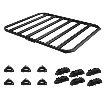 Do zbudowania kompletnego bagażnika na fabryczne punkty montażu potrzebne jest kilka elementów, które razem stworzą szerokie możliwości montażu dodatkowych ładunków na dachu pojazdu. W tym zestawie znajdziesz cztery stopy montażowe, zestawy dopasowujące oraz platformę bagażową Caprock, które po umieszczeniu na dachu mogą służyć jako podstawa do instalacji uchwytów na sprzęt sportowy, boksów czy namiotów dachowych. Bagażnik bazowy opierający się na Thule Caprock cechuje się wysoką jakością wykonania i estetycznym wykończeniem, które wpasuje się w pojazdy wyposażone w fabryczne punkty montażu.