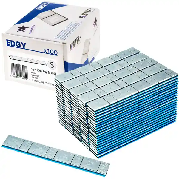 Powierzchnia ciężarków klejonych Edgy Slim zabezpieczona jest powłoką cynkową. Ciężarki sygnowane są marką Stix, która zapewnia serwisom oponiarskim szeroki wybór materiałów wulkanizacyjnych i narzędzi do serwisu kół.