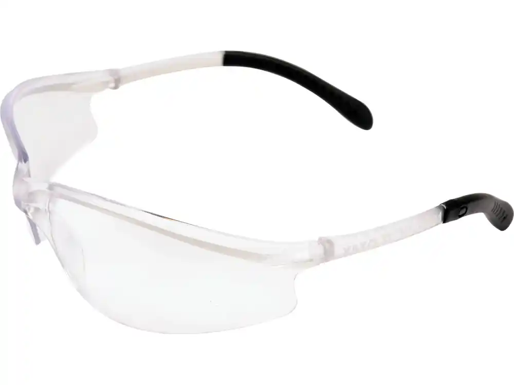 - Skuteczna ochrona oczu przed odpryskami ciał stałych, niezastąpiona przy szlifowaniu, wierceniu czy dłutowaniu
