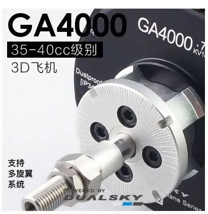 Topowa linia silników elektrycznych marki Dualsky przeznaczona do dużych modeli. GA2000.4 przeznaczony jest do modeli klasy 90E do 110E, rozpiętości do 1.8m i wadze do 6.0kg lub modeli akrobatów 3D o wadze do 3.7kg. Zamiennik silników benzynowych 20cm3
