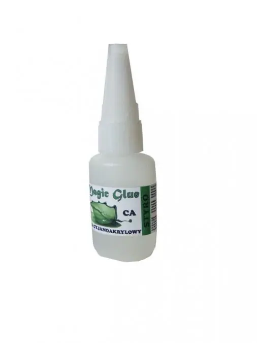 Klej cyjanoakrylowy Magic Glue o rzadkiej konsystencji, w kilkanaście sekund sklei metal, szkło, drewno, gumę, plastik (nieduże ilości), powierzchnie ceramiczne, EPP i inne materiały. Nie zaleca się do klejenia papieru, styropianu, depronu, lekkiej pianki polistyrenowej i stosowania w precyzyjnym modelarstwie plastikowym.