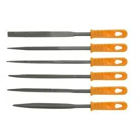 Zestaw zawiera sześć pilników do prac precyzyjnych np. dorabiania kluczy.