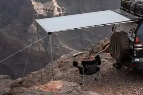 James Baroud Rear Awning to markiza tylna, którą montuje się za pojazdem, by uzyskać dodatkowe kilka metrów wygodnej strefy, chronionej przed słońcem czy lżejszym deszczem. Kompaktowe wymiary tego zadaszenia: 130 x 242 centymetrów, stanowią idealne rozwiązanie dla posiadaczy mniejszych samochodów lub osób podróżujących w mniejszych grupach, które nie potrzebują olbrzymiej przestrzeni.