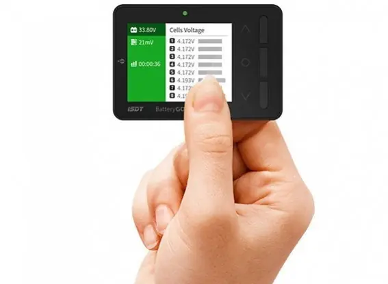 -Battery Meter: Display lithium battery cell counts, battery capacity percentage, each cell’s voltage. (does not support 1s battery)