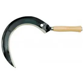 Sierp gładki osadzony na rękojeści wykonanej z drewna. Służy do ścinania roślin i niewielkich gałęzi.