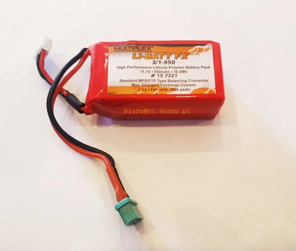 W zestawie znajduje się nadajnik RC Spektrum DX8 G2 (mode można łatwo zmienić na 1, 2, 3 lub 4) z akumulatorem LiIon 7,4 V 2000mAh, zasilacz sieciowy do ładowania nadajnika RC, szelki nadajnika RC, konektor parowania.