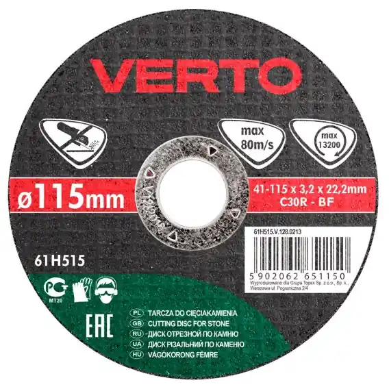 Tarcza tnaca do kamienia VERTO 125 x 3.2 x 22.2 mm to niezawodne narzędzie, które łączy w sobie doskonałe parametry techniczne oraz bezpieczeństwo użytkowania. Jej wysoka jakość oraz efektywność cięcia sprawiają, że jest to idealny wybór dla każdego, kto ceni sobie profesjonalizm i skuteczność w pracy.