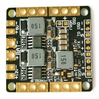 Wielofunkcyjna płytka zasilająca do quadcopterów. Pozwala ona na znaczne zmniejszenie elementów wymaganych do budowy drona, a co za tym idzie na zmniejszenie wymiarów i wagi.