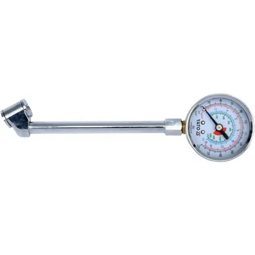Profesjonalny ciśnieniomierz do aut ciężarowych. Zakres pomiarowy do 15 Bar. Całkowita długość 140 mm zapewnia swobodne dojście do kół bliźniaczych w pojazdach użytkowych.