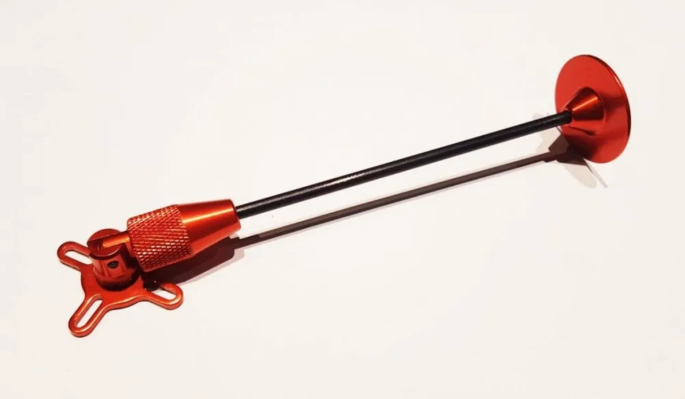 Składany, wykonany z aluminium CNC oraz pręta węglowego.