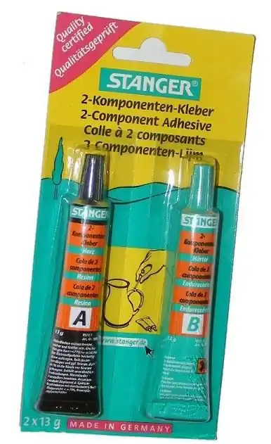 Dwuskładnikowy klej na bazie żywicy epoksydowej niemieckiej firmy STANGER. Nadaje się do klejenia porcelany, metalu szkła, ceramiki, tworzyw sztucznych, drewna i kamienia.